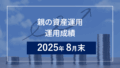 親の投資 親の資産運用成績(2025年8月末) 家全体、親の資産運用の状況について毎月月末に記録していきます。我が家の口座は私と妻で分けてます。NISAの非課税を最大限享受するためです。資産状況運用成績集計:2025年9月3日(水)内訳口座評価額前月比補足旧NISA(夫)¥3,397,8... 2025.09.03 親の投資運用成績