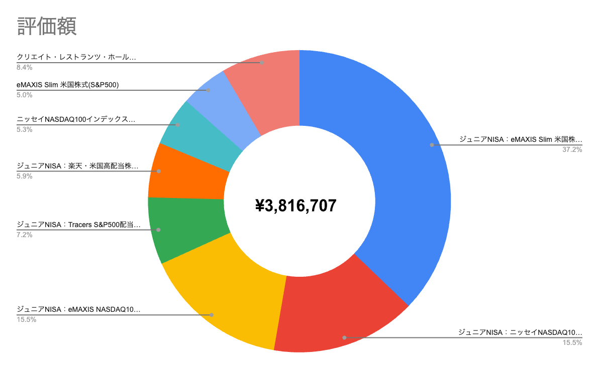 | ジュニアNISA:eMAXIS Slim 米国株式(S&P500) | ¥1,419,365 | +13,581 |