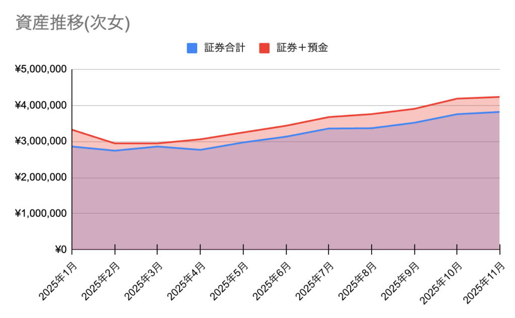 配当関連の投資信託がある分、長女よりも若干微増でした。