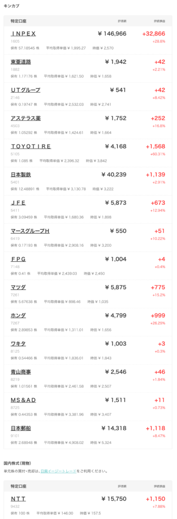 日興フロッギーの口座では銘柄がたくさんあるのでキャプチャを貼り付けます。