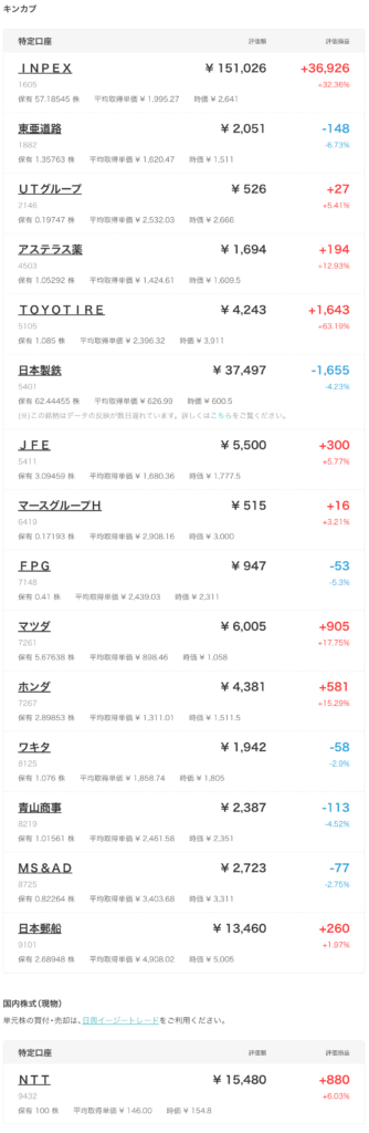 日興フロッギーの口座では銘柄がたくさんあるのでキャプチャを貼り付けます。