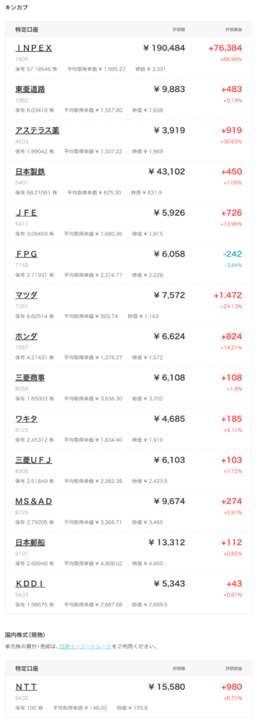 日興フロッギーの口座では銘柄がたくさんあるのでキャプチャを貼り付けます。